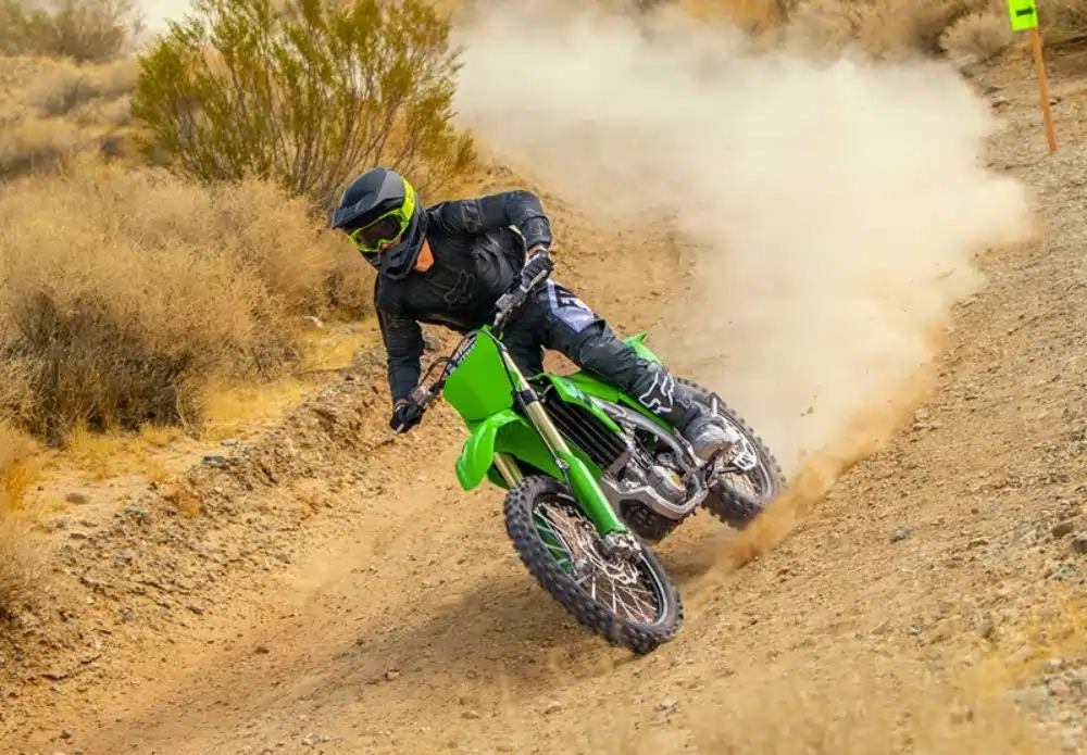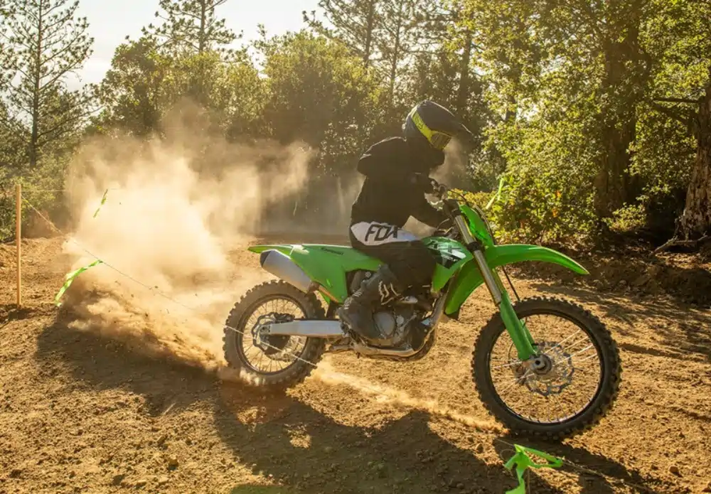 The high-performance suspension comes directly from the KX250. Spring rates and damping settings optimized for trail riding offer improved feedback, especially when riding aggressively.