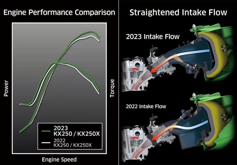 - Revised downdraft intake angle and fuel injection settings for optimized off-road use