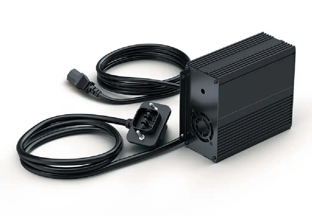 Instead of one heavy battery, two removable lithium-ion batteries are used. Each battery weighs 11.5 kg, contributing to portability. The batteries are located under the storage box, mounted in parallel.