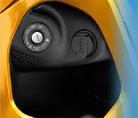 All-in-one lock provides one key for all functions. It locks the ignition, locks the handlebars, opens the fuel tank, and opens the seat.
