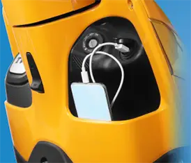 Phone charging is located in the front for easy access.